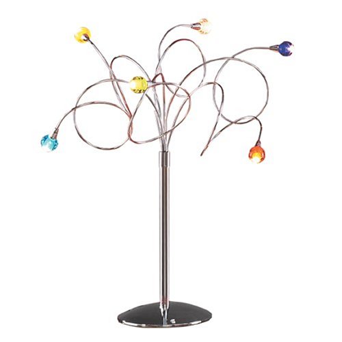 With vibrant, multi-colored glass sconces spiraling into whimsical designs, you can twist the arms to create your own artisitc display. Each of its 6 arms takes a 10 watt halogen bulbs and features a clean chrome finish.