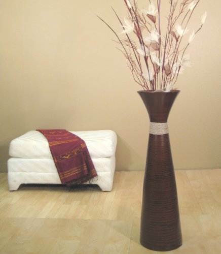 Brown Fluted Bamboo Floor Vase measures 36" tall X 10" in diameter at the bottom. Finished in a rich cocoa brown. If you would like complimentary floral foam, please select the Vase plus Foam option at check out.