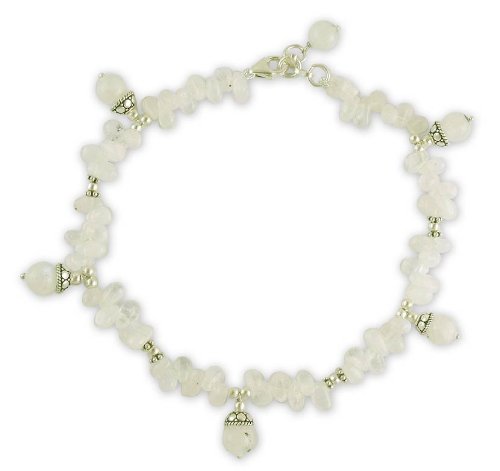 NOVICA, in association with National Geographic, offers thousands of limited edition and one-of-a-kind gifts, jewelry, and home decor treasures handmade by master artists and artisans throughout the world. Exalting the mystical allure of rainbow moonstone, Narayani designs an elegant anklet. She clusters polished gemstones in a circlet with sterling silver beads. Five lucid globes punctuate the ankle bracelet. .925 Sterling silver Artisan Info: "Namastee, I'm Narayani from Delhi, where I grew up in a quiet and peaceful family environment. We were a close-knit family with high respect for our culture and traditional values. My mother has been my greatest source of inspiration in my entire life. She has been there for me during good and bad times. She would always teach me the principles of life, manners, and everything one needs to lead a happy and successful life. "Indian women are renowned for being always graceful, helpful, and patient and these qualities I believe I have inherited from my mother. I am just a homemaker and never did I ever imagine I would be designing jewelry. I have lived most of my life devoting my time to my family and now my husband. "I think I also inherited my interest in jewelry from my mother. I remember her as constantly collecting gemstones and jewelries. She gave me quite a few pieces from her collection when I got married, and which I still have with me. "However, for a while it seemed that this interest in jewelry had skipped me, and had been directly