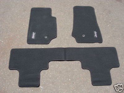 You are buying one set of new genuine Mopar 12 ounce carpeted floor mats for the all new 2007-2010 Jeep Wrangler FOUR door. This set of 3 floor mats are dark slate (almost black) in color and are contoured to fit your Jeeps floorboards perfectly. Jeep owners are gonna love the embroided "JEEP" logo. MOPAR #82209495AB